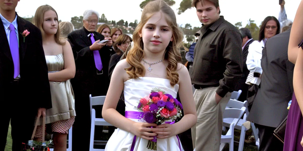 “Papai, eu quero ser a daminha de honra, mal posso esperar!”, disse Amy, girando pela sala, fingindo que estava usando um vestido elegante.