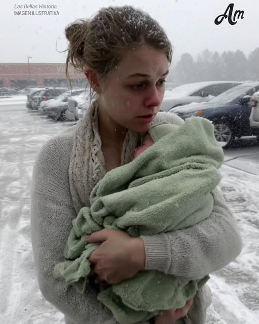 Uma jovem estava perto de um poste de luz, segurando um bebê junto ao peito. Sem carro, sem carrinho de bebê, sem bolsas. Apenas ela e o vento.