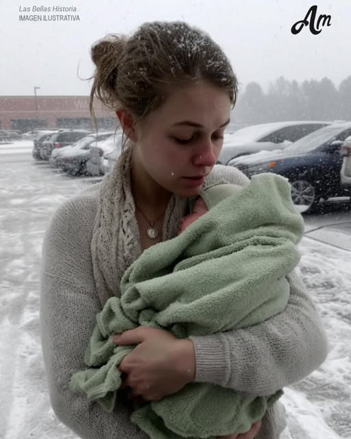 Uma jovem estava perto de um poste de luz, segurando um bebê junto ao peito. Sem carro, sem carrinho de bebê, sem bolsas. Apenas ela e o vento.