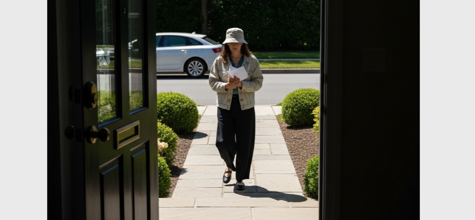 Uma mulher em pé do lado de fora de sua casa | Fonte: Midjourney