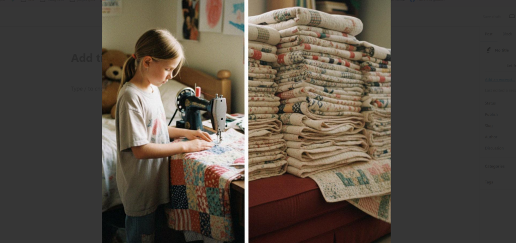 Todo fim de semana, Ellie chegava com sua mochila cheia de retalhos de tecido e os dedos ansiosos para criar. Passávamos horas recortando moldes, enfiando agulhas e cantarolando canções de Natal, mesmo que o Dia de Ação de Graças ainda não tivesse chegado.