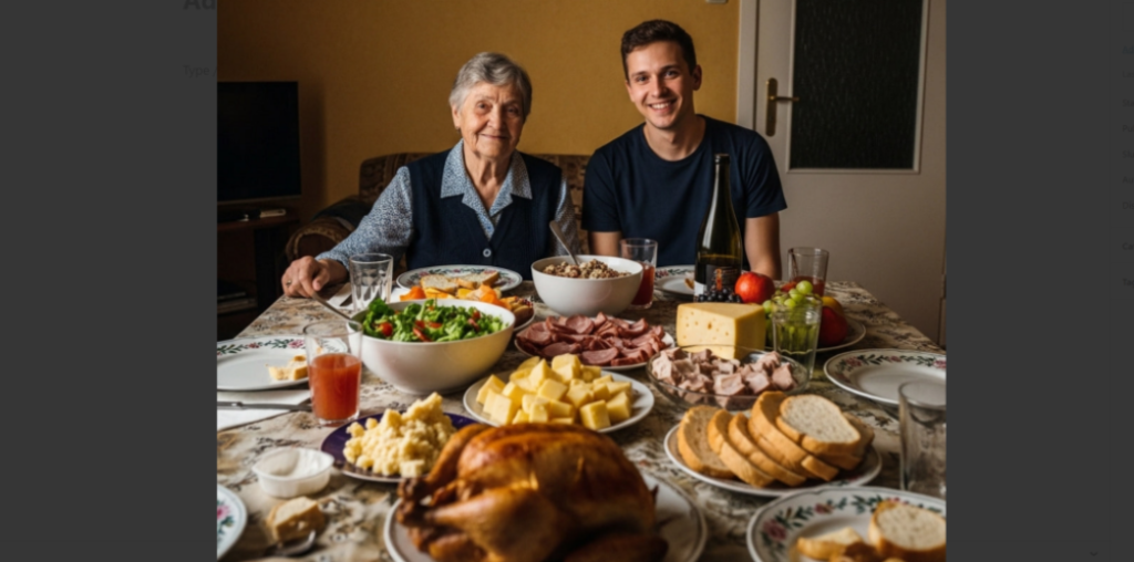 Um senhor idoso sentado à mesa de jantar | Fonte: Midjourney