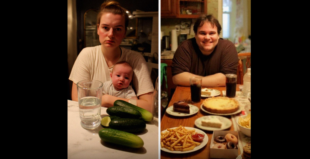 “Você não estava brincando”, ela interrompeu. “Eu vi o quanto ela comeu pouco hoje à noite. E isso enquanto ela tem um bebê para amamentar. Chega.”