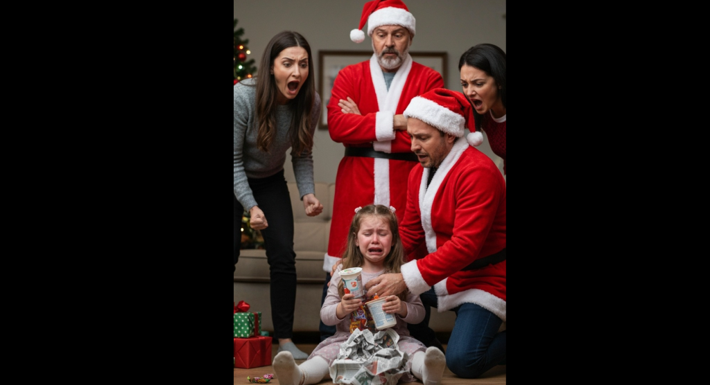 Mi padre, vestido de Papá Noel, le dio a mi hija de siete años una bolsa de basura y un trozo de carbón, y le dijo que era demasiado “mala” para merecer un regalo. Mi madre y mi hermana lo animaron. No grité. No grité. Actué. Dos semanas después, eran ellas las que gritaban presas del pánico.