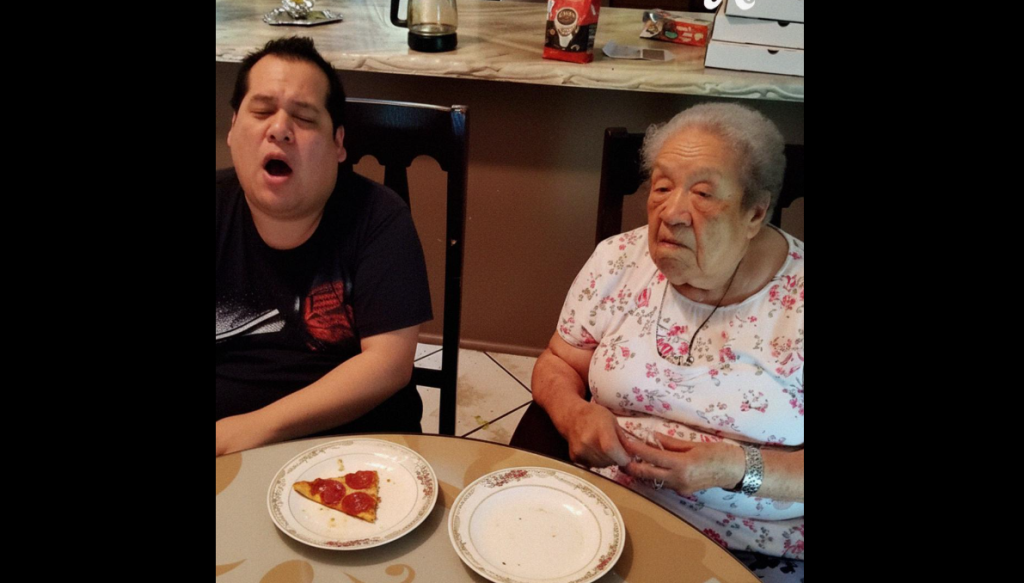 Eu escrevi a legenda: “Já se perguntaram o que acontece quando alguém continua roubando sua comida depois de você ter pedido para parar? Aqui está minha sogra comendo a porção que tem meu nome. Limites, pessoal. Eles importam.”