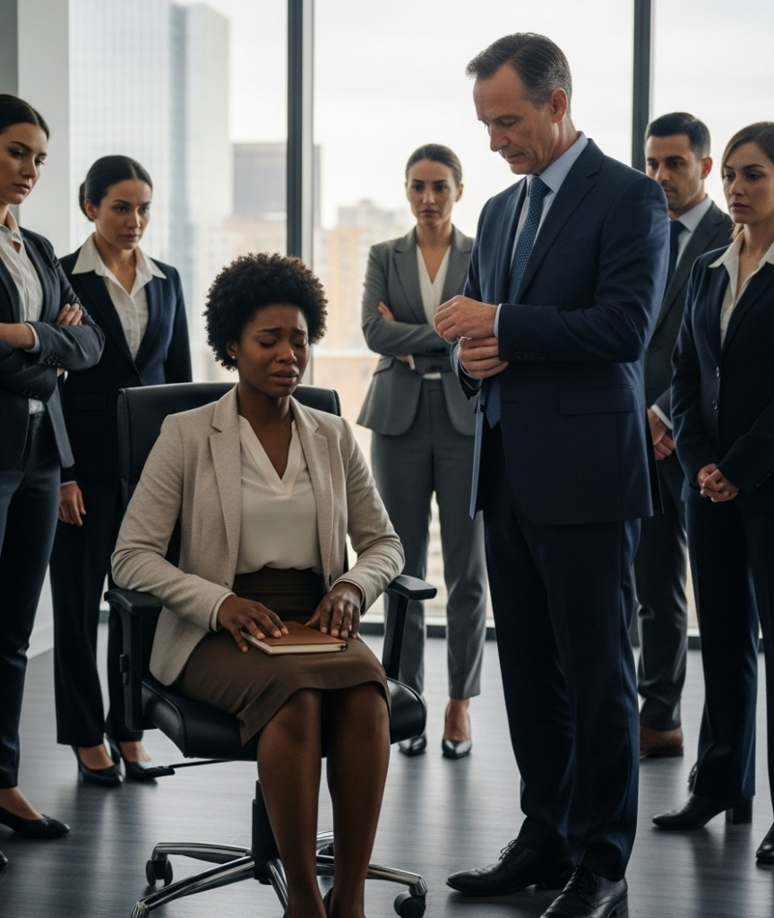 Numa manhã cinzenta de segunda-feira, durante uma reunião de avaliação do departamento, o olhar de Edward deteve-se numa mulher discreta perto do fundo da sala. Serena Miles — uma contadora. Ela raramente falava, evitava fofocas e vestia-se com simplicidade. Naquele dia, usava uma blusa creme, um blazer antigo e sapatos que claramente já tinham visto dias melhores.