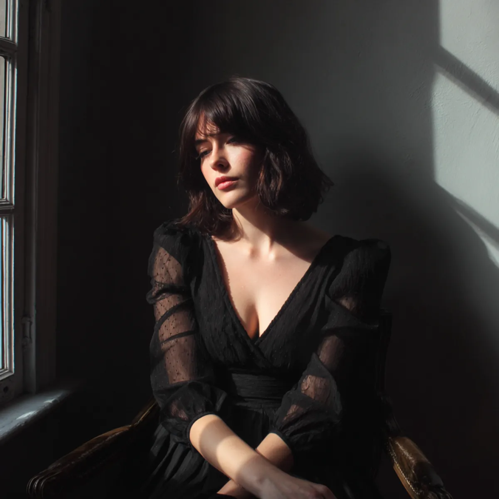 Uma mulher emocionada sentada junto a uma janela | Fonte: Midjourney