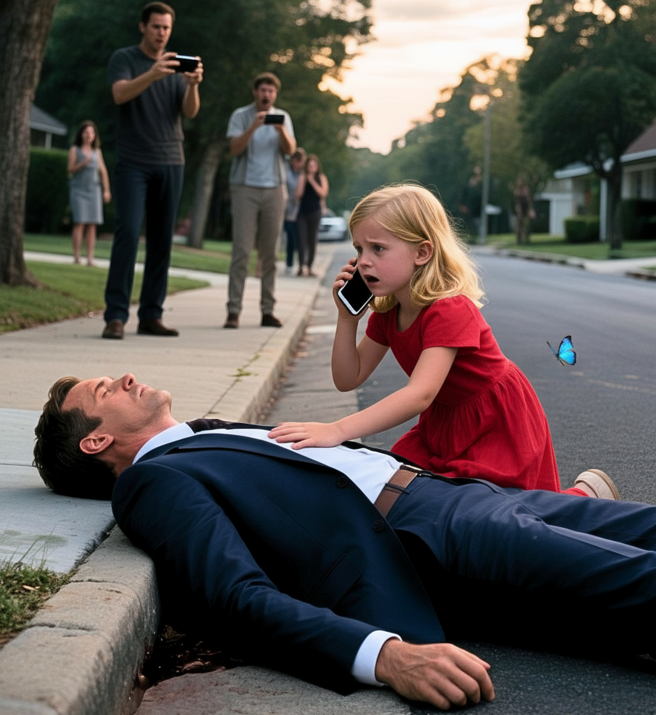 Ela paralisou ao ouvir um baque, e então viu o homem cair. Sem pensar, correu até ele, colocou uma pequena mão em seu peito e sussurrou: “Ele está respirando.”