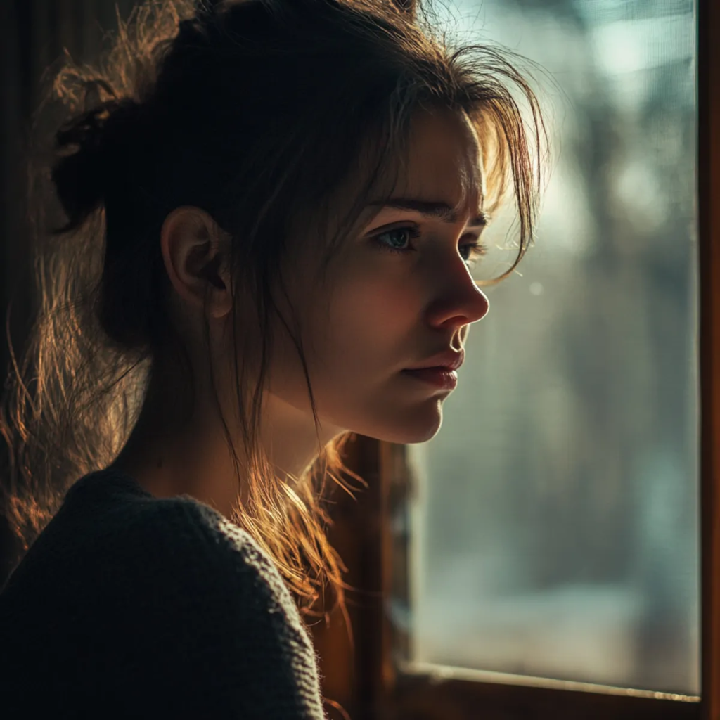 Uma mulher triste em profunda reflexão | Fonte: Midjourney