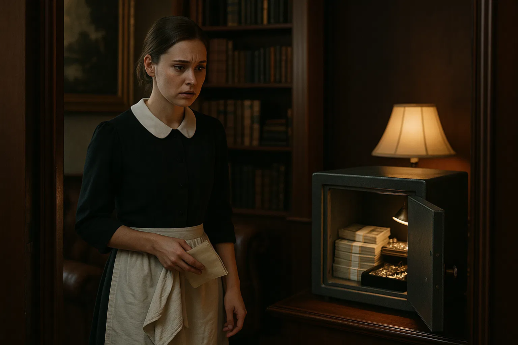 Naquele dia, ele deixou a porta entreaberta. O cofre, normalmente fechado com um código de dez dígitos, estava escancarado, com maços de notas de cem dólares expostos sob o brilho dourado da luminária de mesa. De propósito.