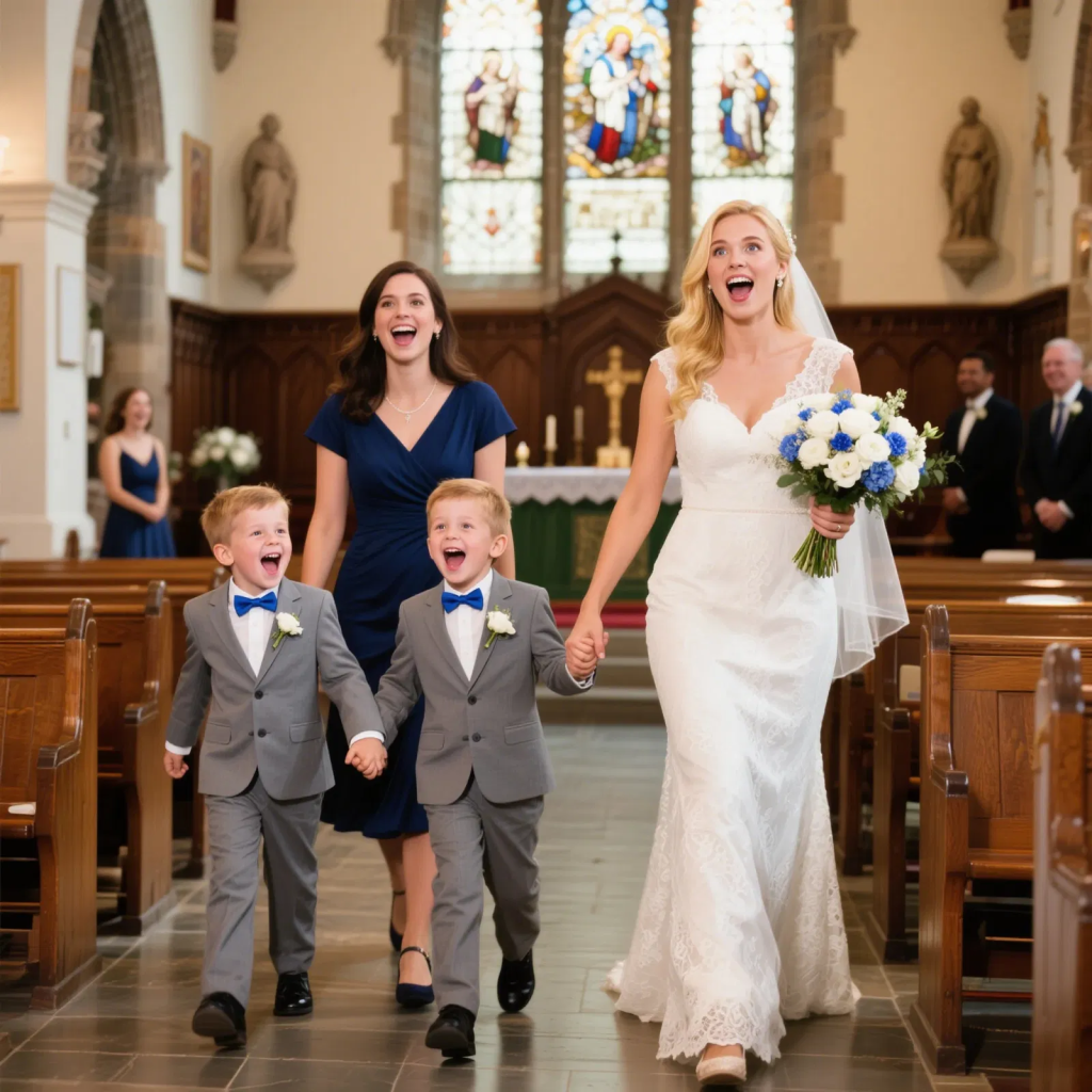 A igreja brilhava com a luz do sol, pétalas brancas enfeitavam o corredor e o ar cheirava a rosas e expectativa. Olivia estava deslumbrante em seu vestido azul-marinho de madrinha, e seus meninos — meus pajens — caminhavam orgulhosamente pelo corredor com suas almofadinhas.