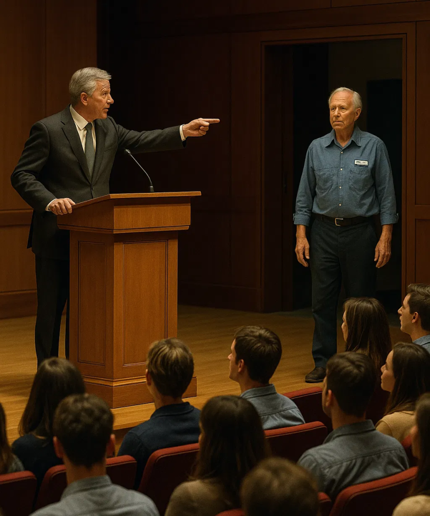 Quando os aplausos finalmente cessaram, a palestra continuou — mas a verdadeira lição já havia sido ensinada.